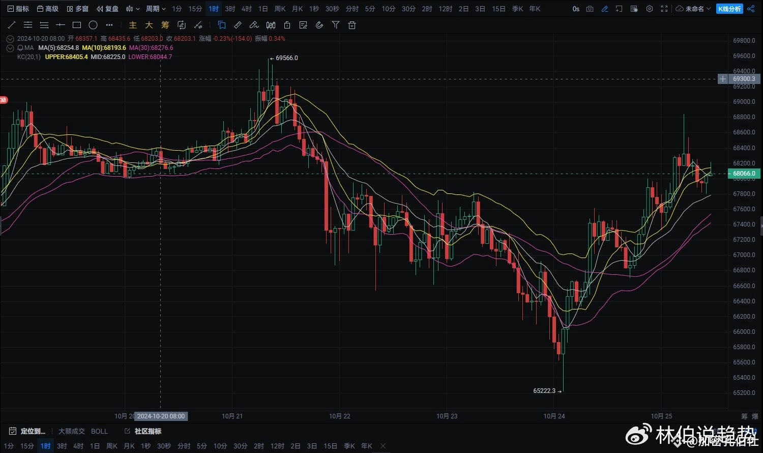 通过1K线图,BTC在68066.0附近形成了强劲支撑位。从昨日的价格走势来看,市场整体呈现出震荡回调的趋势。