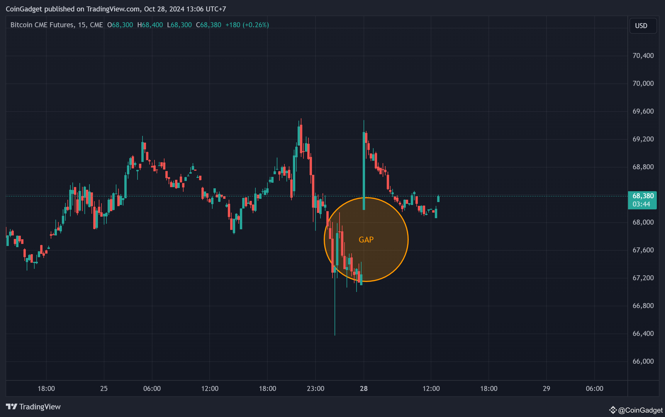 BTC CME Futures diperdagangkan dengan jam terbatas dan tidak beroperasi pada akhir pekan. Ketika pasar BTC global bergerak signifikan di luar jam CME, akan muncul GAP antara harga penutupan hari Jumat dan pembukaan hari Senin. GAP ini kerap dipantau karena, berdasarkan data historis, cenderung terisi pada periode perdagangan selanjutnya.