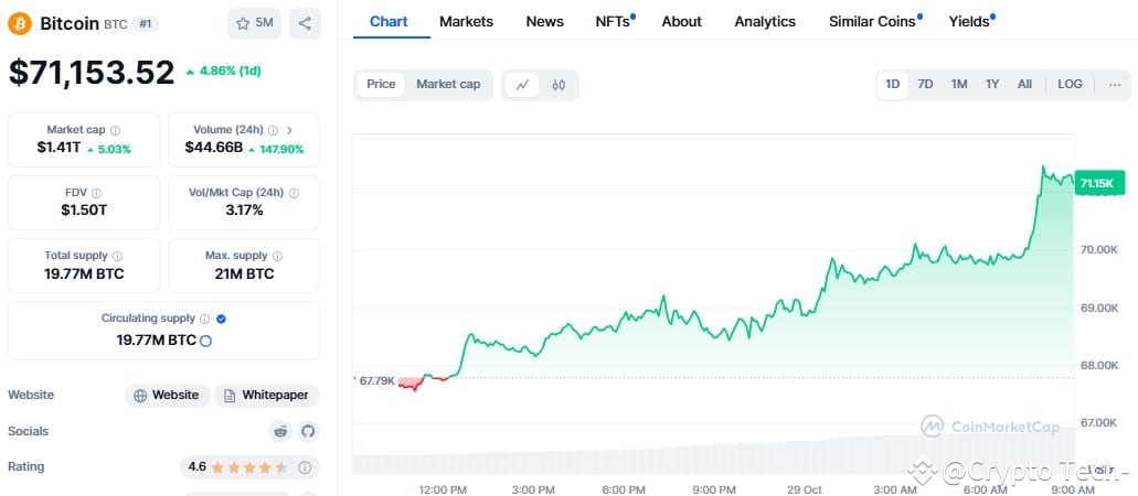 Bitcoin price soared above $71,000 early Tuesday, leading a broader rally in the cryptocurrency market. This surge comes just a week before the U.S. elections, which many traders believe could act as a positive catalyst for Bitcoin, regardless of the election outcome.