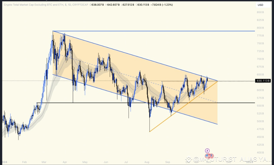 Contrairement au $BTC, les altcoins n'ont pas encore officiellement dépassé le sommet du canal (ou le sommet local précédent).