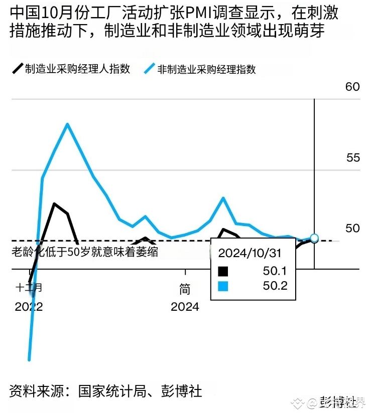 7.经过五个月收缩后,中国工厂活动开始小幅增长,官方制造业 #PMI 上涨到50.1,非制造业PMI稳定在50.2,这可是好的开始呀!(图1)