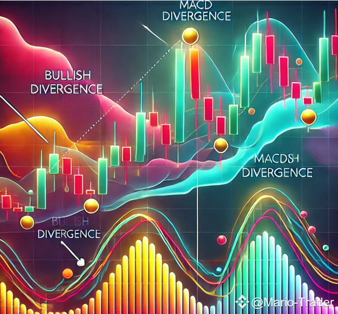 Если цена криптовалюты достигает нового максимума, а линия MACD этого не делает, это может указывать на потенциальный разворот тренда (медвежья дивергенция).