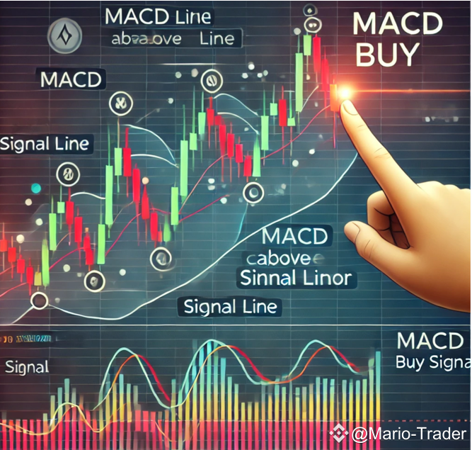 На графике видно, как линия MACD пересекла сигнальную линию снизу вверх, что является сигналом для покупки.