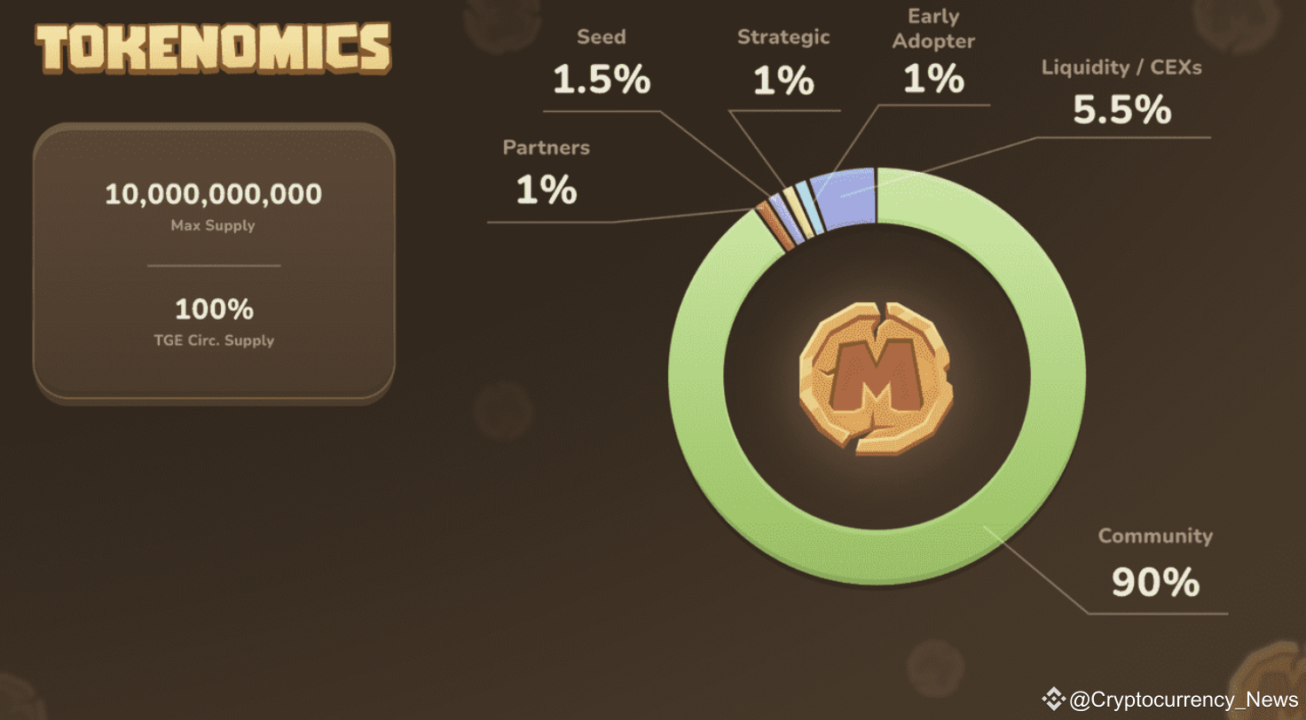 Вознаграждения для сообщества (90%): Большинство токенов — 90% — предназначены для вознаграждения сообщества.
