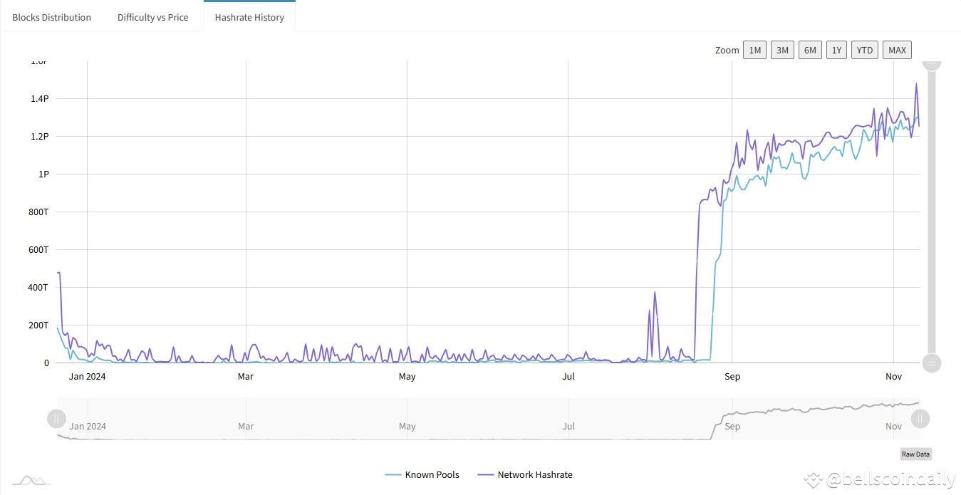 The hashrate of Bellscoin has seen a significant increase in recent months, as illustrated by the graph above. In the cryptocurrency industry, a rising hashrate generally reflects growing interest from miners, signaling both increased security and profitability for the network. This surge in hashrate may be driven by a boost in Bellscoin's market value or broader appeal, alongside strong support from the mining and investment community.
