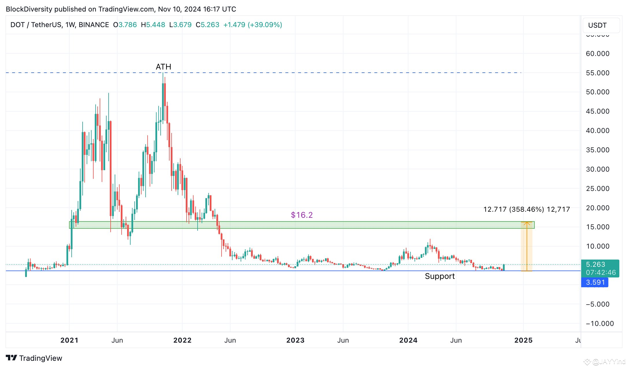 1- $DOT T highly undervalued but great project. Mega support around $3.6, and nearest mega resistance is $16.2. It is basically 3x-4x capability, low risk investment. Hasn't pumped yet
