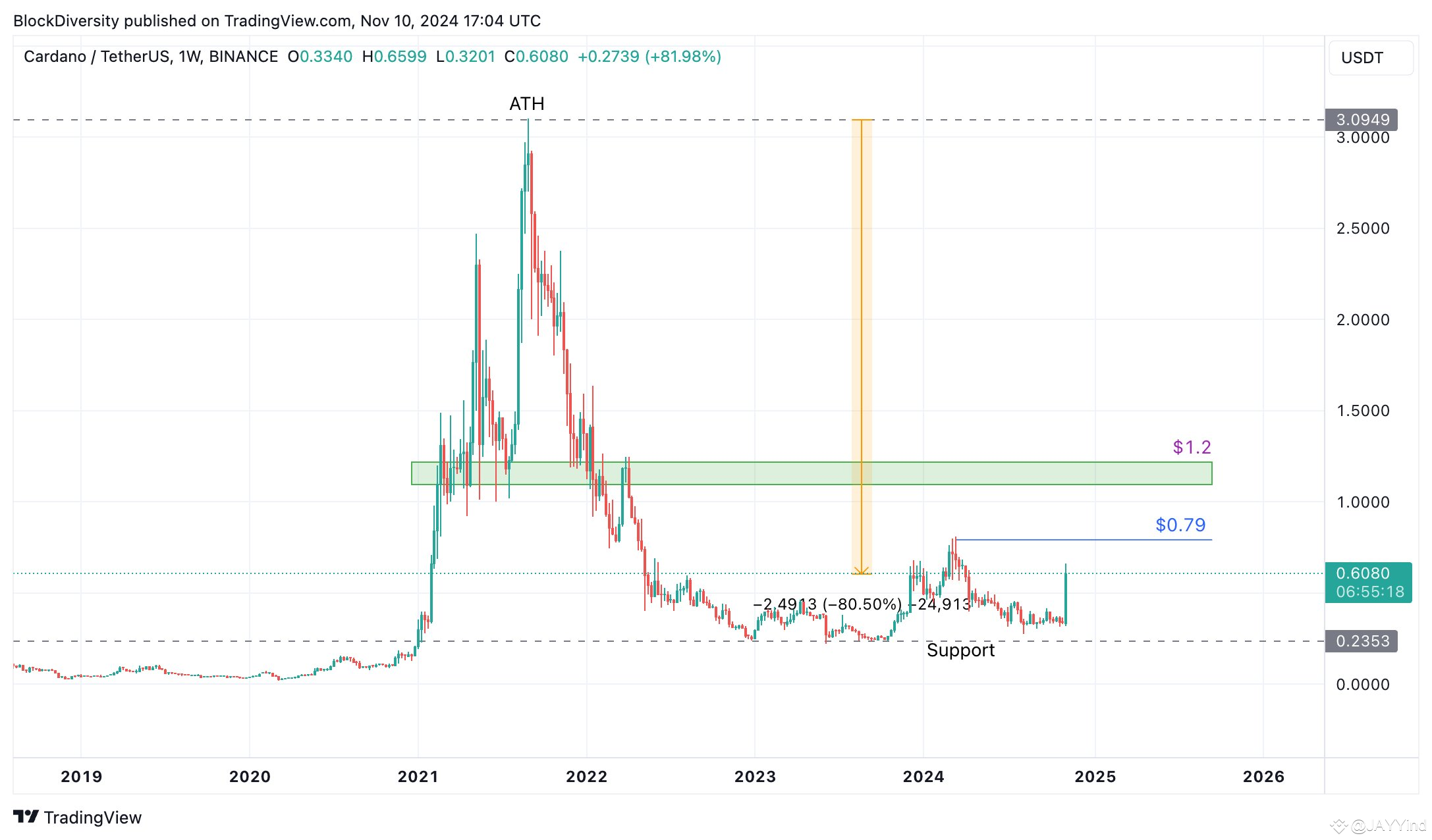 5- $ADA #Cardano is 80% down from last ATH. If the bullish momentum continues then $0.79 and $1.2 are the resistances. If $ADA will perform well, I doubt. Several delays in project, broken promises from team, really put this nice project on backfoot. Lets see how it matches the performance with $BTC and $ETH.