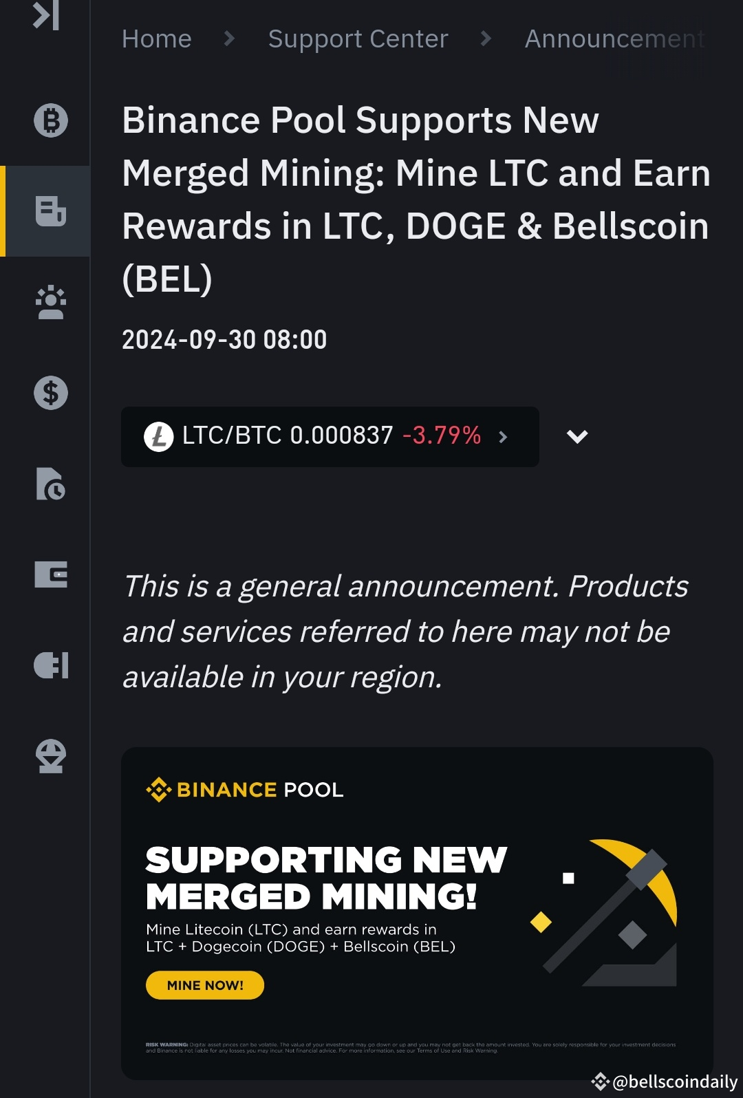 Binance pool runs mining for #bellscoin. currently market is not available on binance please go to mexc or nonkyc to trade $BELLS.