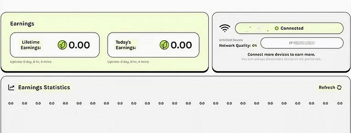 回到 Grass 官网,刷新页面。页面右上角应显示“Connected”标志,这意味着您已成功接入 Grass 网络。