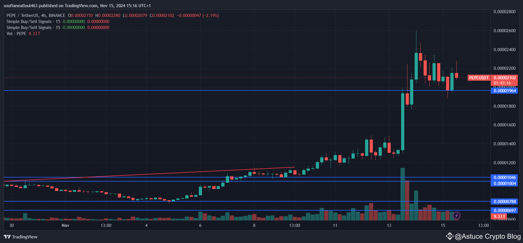 Le token $PEPE , bien connu dans la catégorie des "jetons mèmes", continue de capter l’attention des investisseurs avec sa récente flambée de prix. Cette croissance rapide est souvent alimentée par le buzz social et l'intérêt de la communauté, caractéristiques des jetons mèmes. Observons les éléments techniques et les perspectives de ce token.
