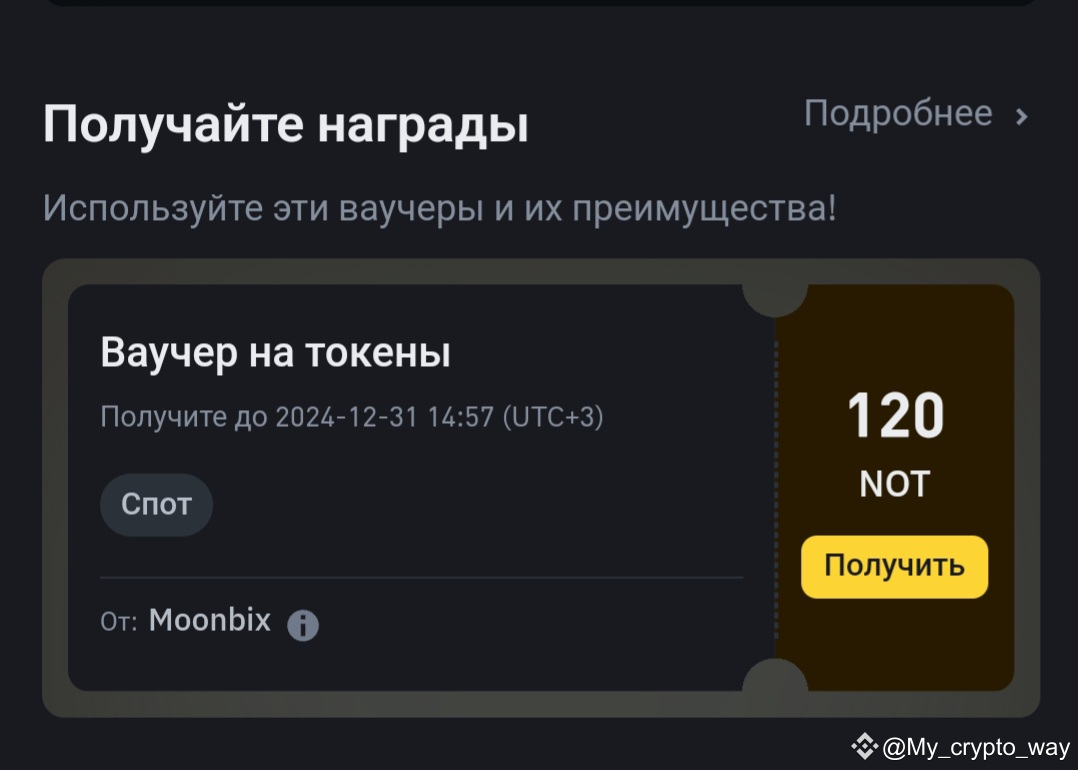 Кому выпали награды в #Moonbix проверяйте бонусный центр. Сегодня мне наконец-то пришёл ваучер на 120 not