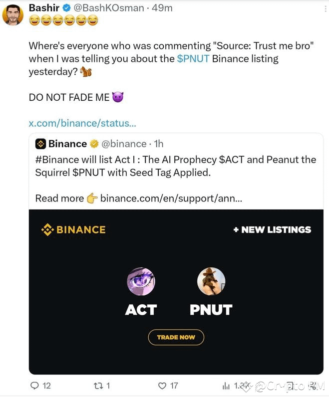 An insider called $PNUT under $400M market cap before the Binance listing.