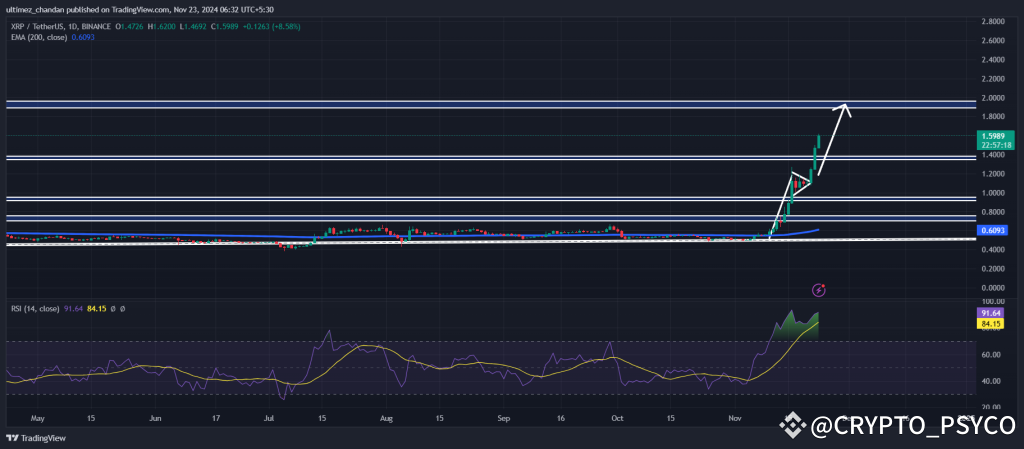 ♦️With notable gains in recent days, Ripple’s native token, XRP, has crossed the $1.5 level for the first time since 2021. However, based on its price action and performance, it appears that the XRP price rally is likely to continue in the coming days until it reaches the next resistance level of $2.