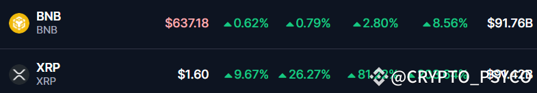🔹At press time, XRP is trading near $1.60 and has registered a gain of over 27% in the past 24 hours. During the same period, its trading volume has surged by 80%, indicating increased participation from traders and investors amid a bullish outlook.