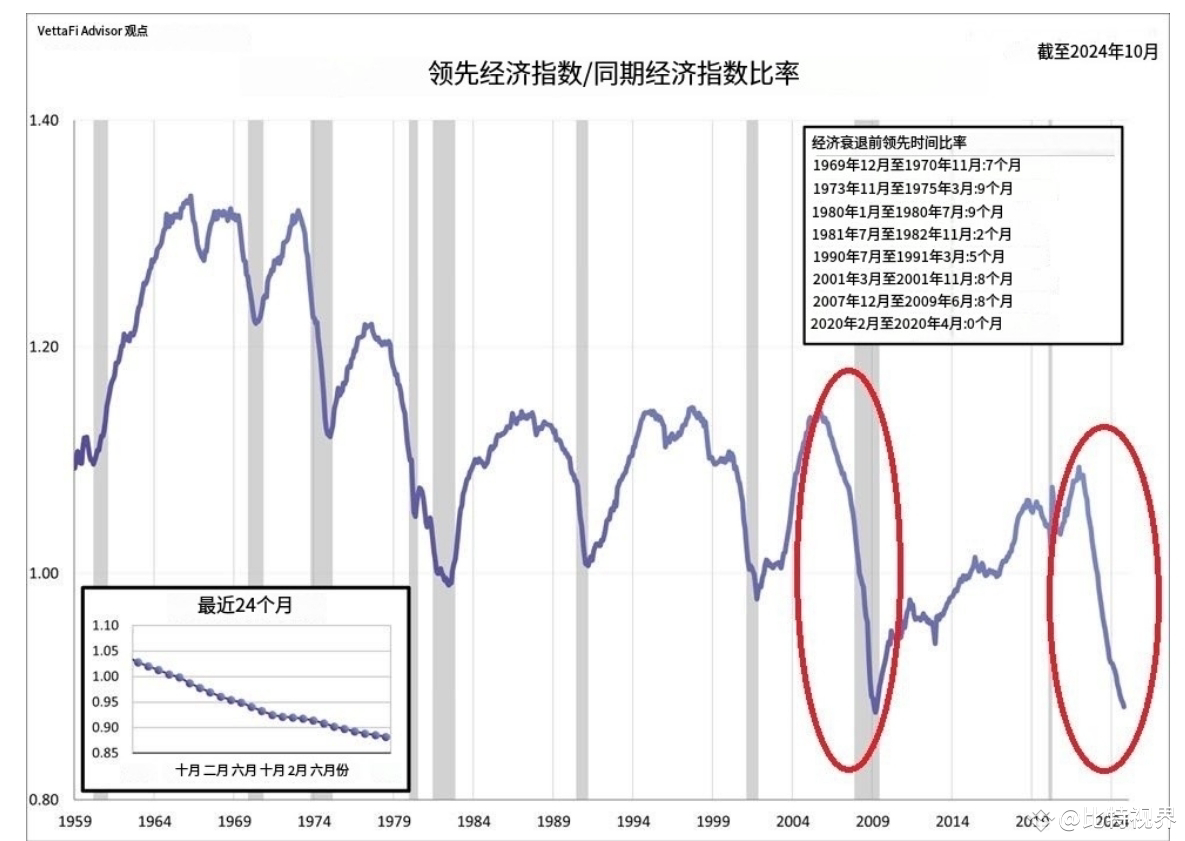 5.美国经济是否陷入衰退?尽管股市接近历史高点但经济指标却发出警告,美国领先经济指数 #LEI 与同步经济指数 #CEI 的比率已降到金融危机以来的最低水平,并且已连续31个月下降,从历史上看这一比率一直是即将到来的衰退的有力指标(图2)