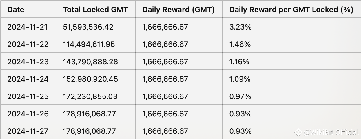 Participants staking their tokens will share 100 million GMT rewards from the ecosystem fund, distributed daily over 60 days. The daily pool allocates 1.66 million GMT, proportionate to staked amounts.