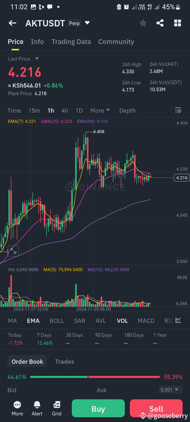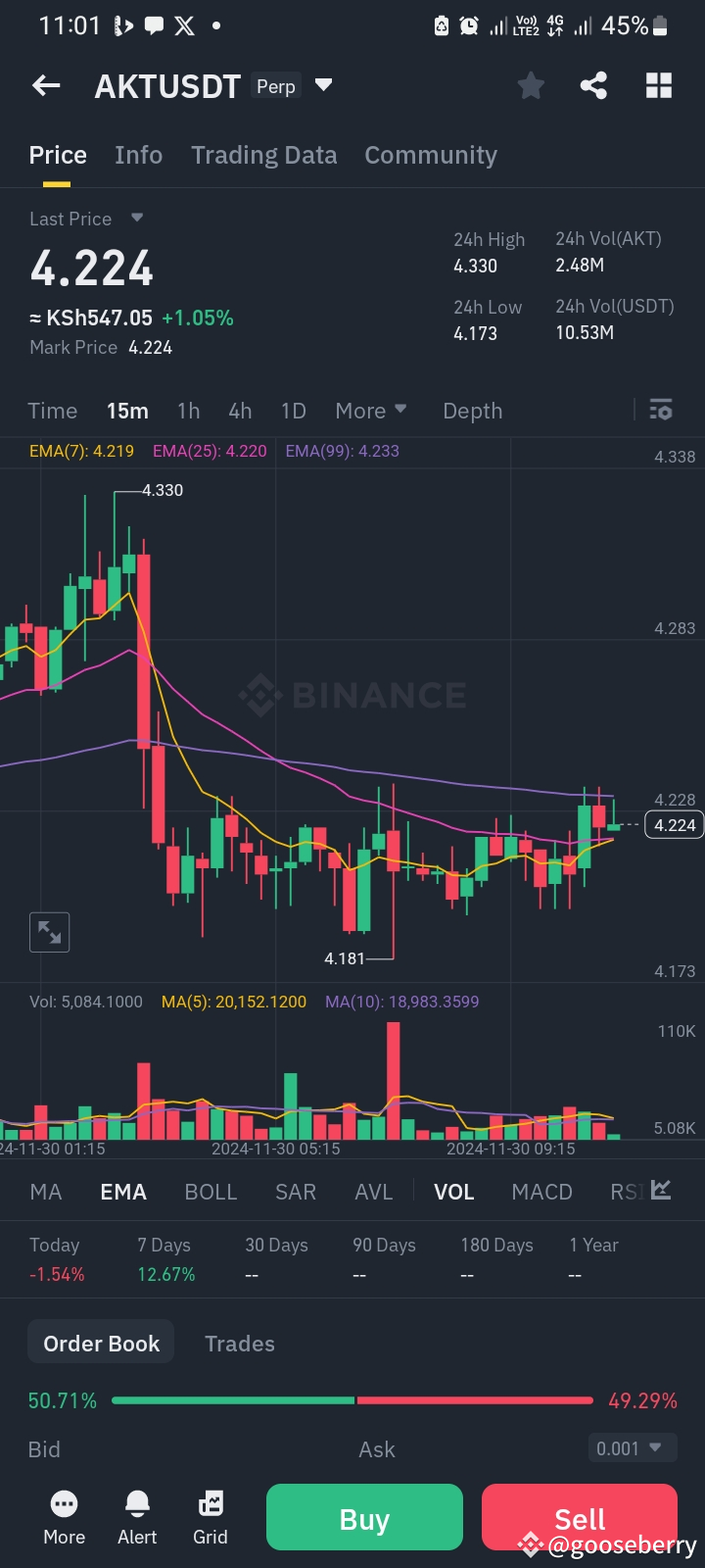 Current data indicates that AKT's price is around **$4.22**, showing a slight upward movement in the short term. The trading volume over the past 24 hours reflects robust activity, indicating sustained interest in the market.