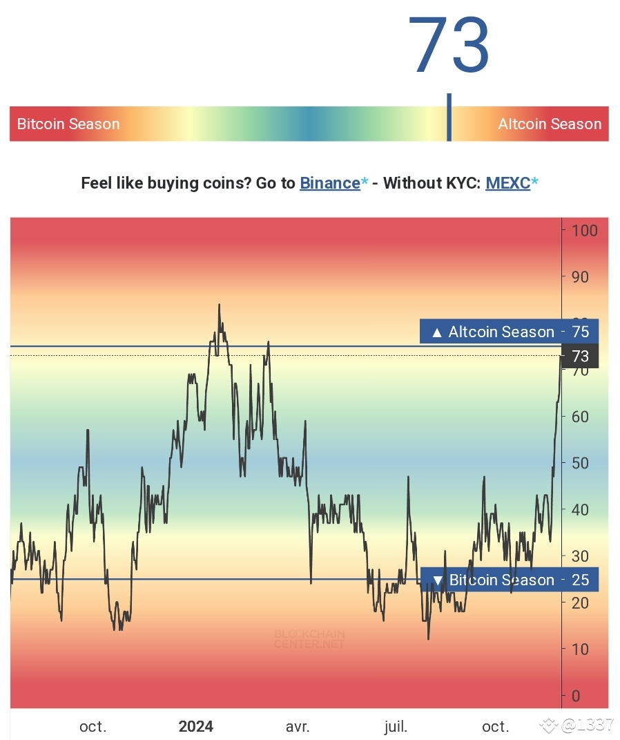 ما تعيشه الآن هو المرحلة 4 من رحلة السوق... موسم العملات البديلة (Altseason) قد بدأنا دخوله فمؤشر تجاوز 55 .