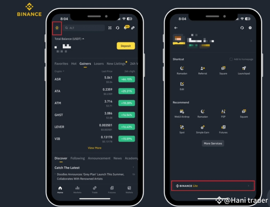 Tap on the top left corner of your home screen, you’ll see Binance Lite written at the bottom