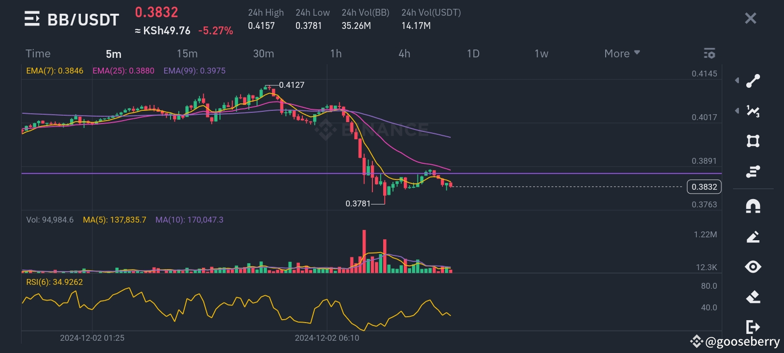 - **Support Level:** Approximately **$0.3781** (the price has rebounded from this point).