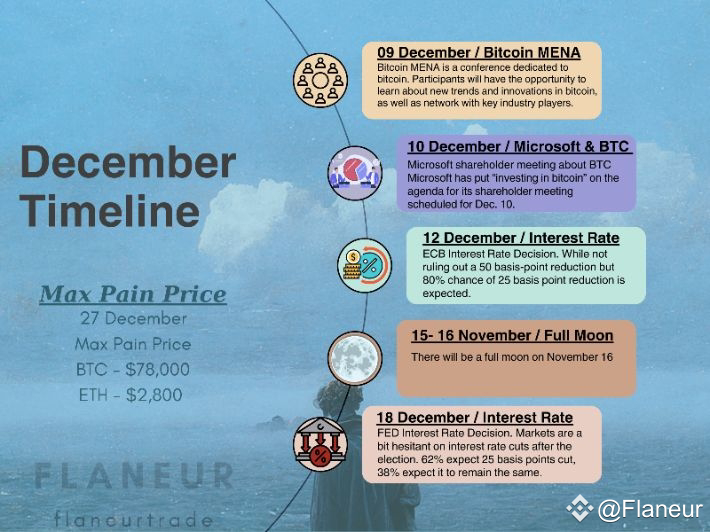 As I mentioned in my November analysis, 70k was just the beginning, and the upward movements created an excellent atmosphere for everyone. We've left behind a month where BTC couldn't quite touch 100k, ETH continued to show weakness, and XRP displayed its classic relentless rises. Now, we have a calendar filled with interest rate decisions, conferences, and Bitcoin discussions ahead. The European region and the US will be busy with interest rate decisions and inflation data in the second and third weeks of December. While ECB's 25 basis point cut is considered certain, there's less certainty about the FED. Additionally, Microsoft's shareholders will meet to discuss BTC, which will be significant news for Bitcoin.