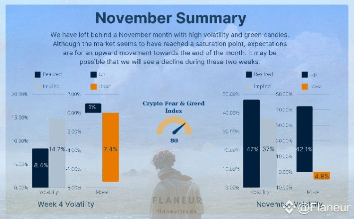 BTC, which hasn't quite touched the 100k price point, closed the last week with a decline. In November, we started seeing the expected movement as implied volatility rose 10% higher than anticipated. Everyone's wondering what the price will do in this month, which marks both Q4 and year-end closings.