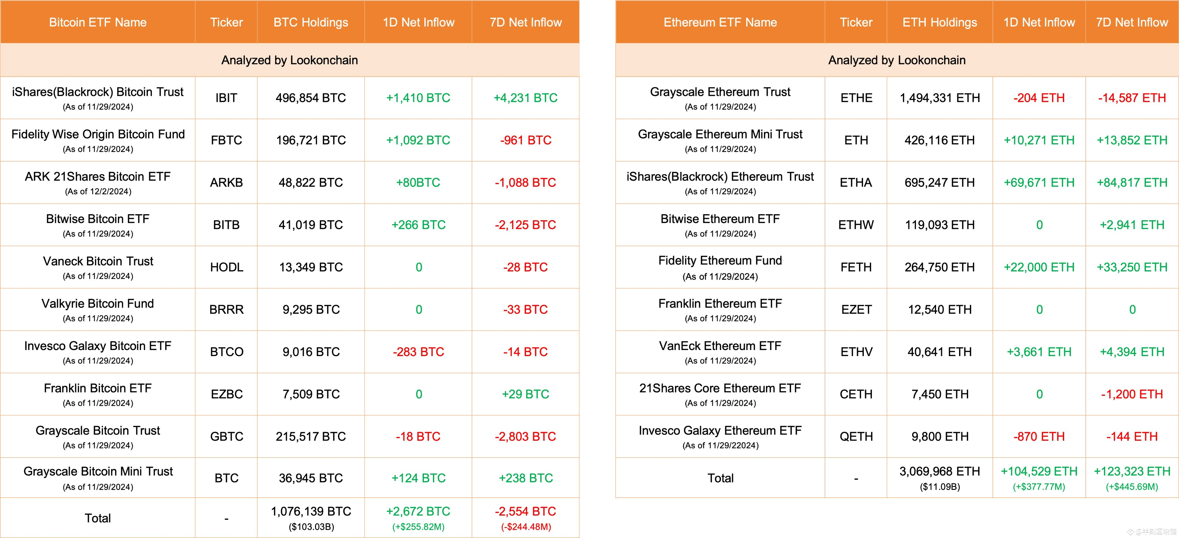 9 支以太坊ETF 净流量:+104,529 $ETH(+3.7777 亿美元)#BlackRock流入 69,671 $ETH(2.5179 亿美元),目前持有 695,247 $ETH(25.1 亿美元)