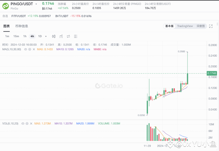 上周五晚间,TON 生态 AI 基础设施 PinGo 经济代币 PINGO 上线 Gate.io 交易所,交易开始后,PINGO 代币经过小幅调整后走出了一段震荡上升的走势,打破了大量代币上线即巅峰的「习惯性」走势。以最高 0.25 美元左右的价格计算,PinGo 的 FDV 来到了 2.5 亿美元左右。
