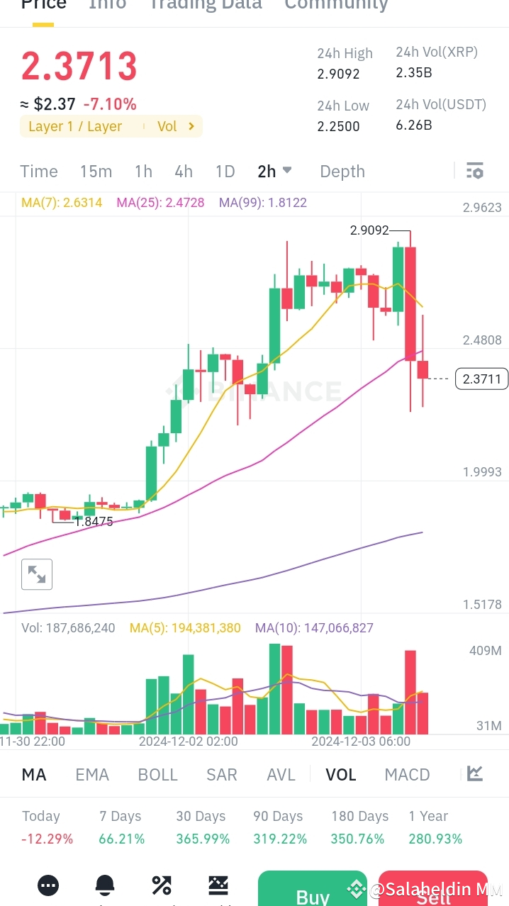 Keep monitoring $XRP closely depression aftet gain may leed to 15% profit.. look at the current chart 2hous scale depicting drop in price, in my opinion by the next week Ripple will surpass $3.00. DYOR!