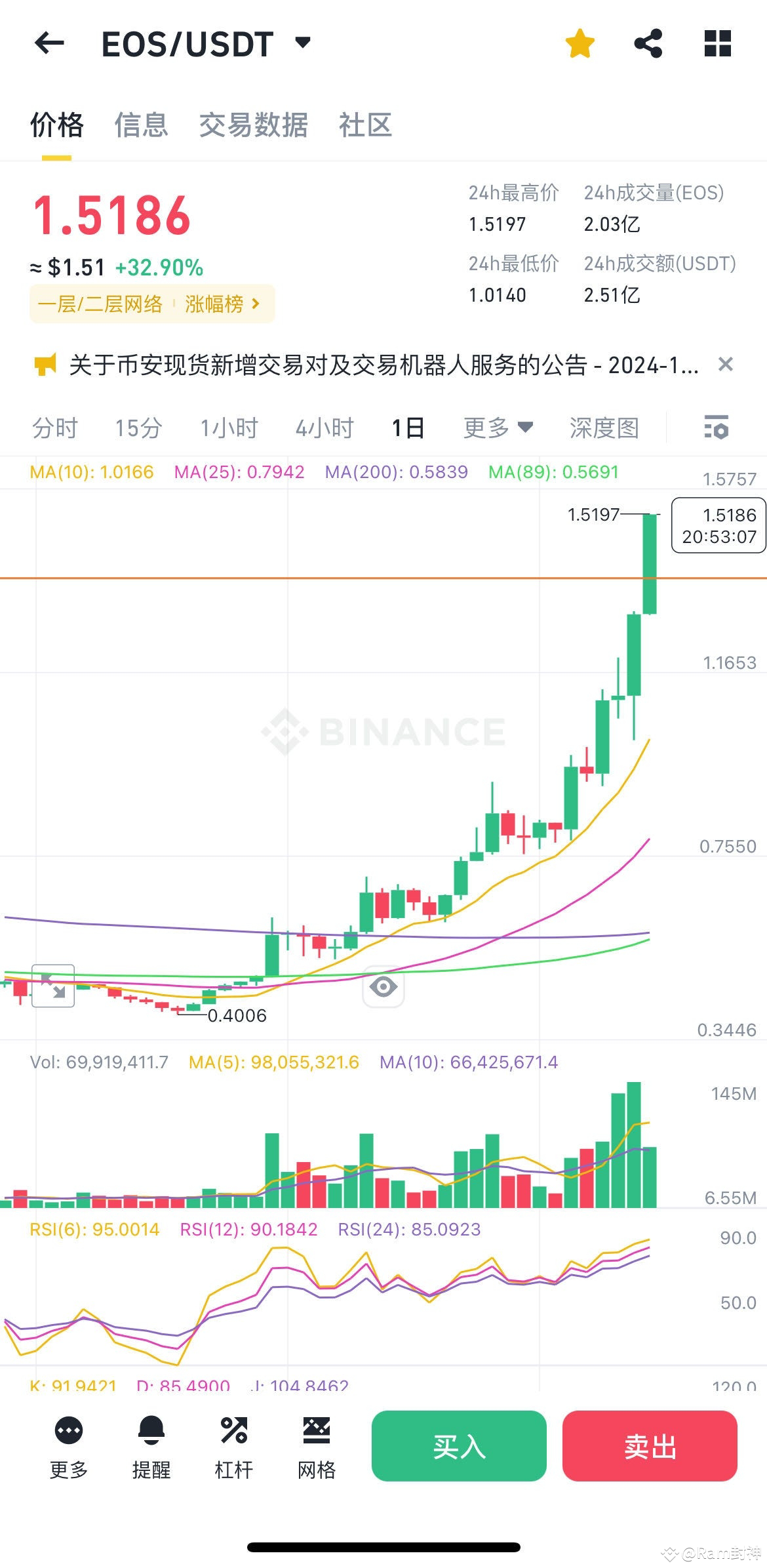 2024年EOS第一个百倍生态RAM,虽然近期RAM比较低迷,但是其社群很活跃,有3.5亿EOS的RAM专项生态基金支持,未来可期:
