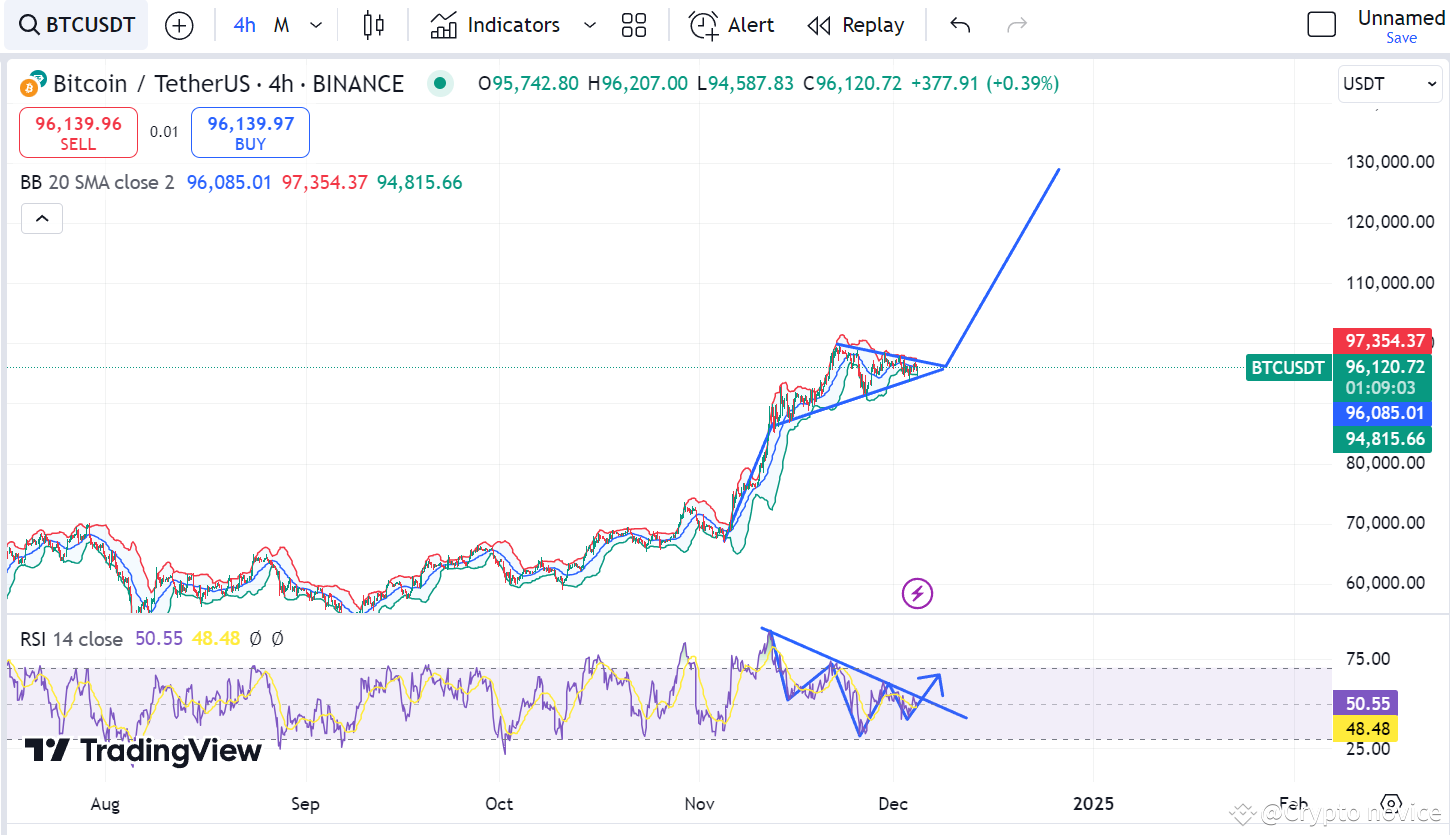 Here we can see that Bitcoin is creating Bullish panent pattern. Very soon it will pump hard . On Bollinger Band, we can also see that it is holding it's support. It is becoming concilated and it will break out very very soon.