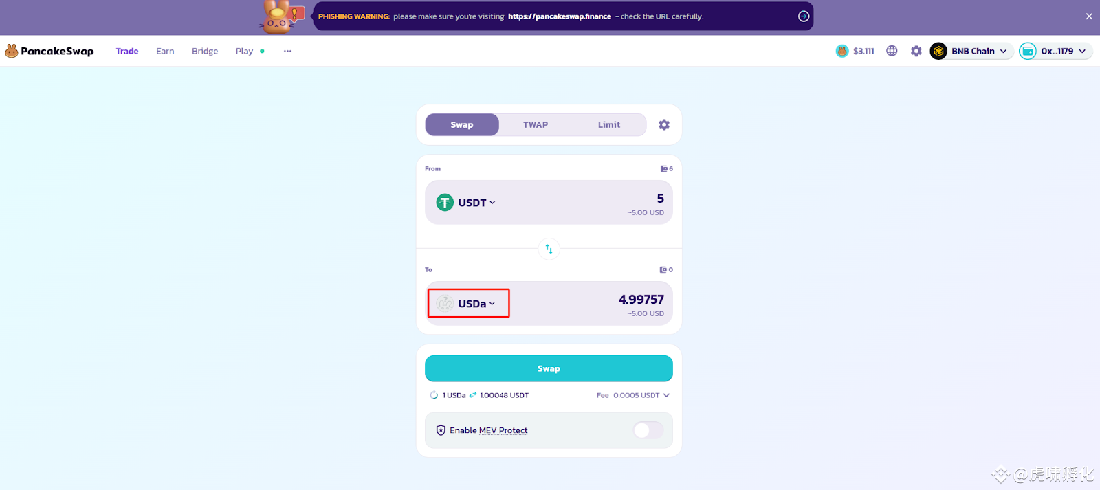 [Avalon Labs]: 在 Pancake 上交易购买USDa (BNBChain)