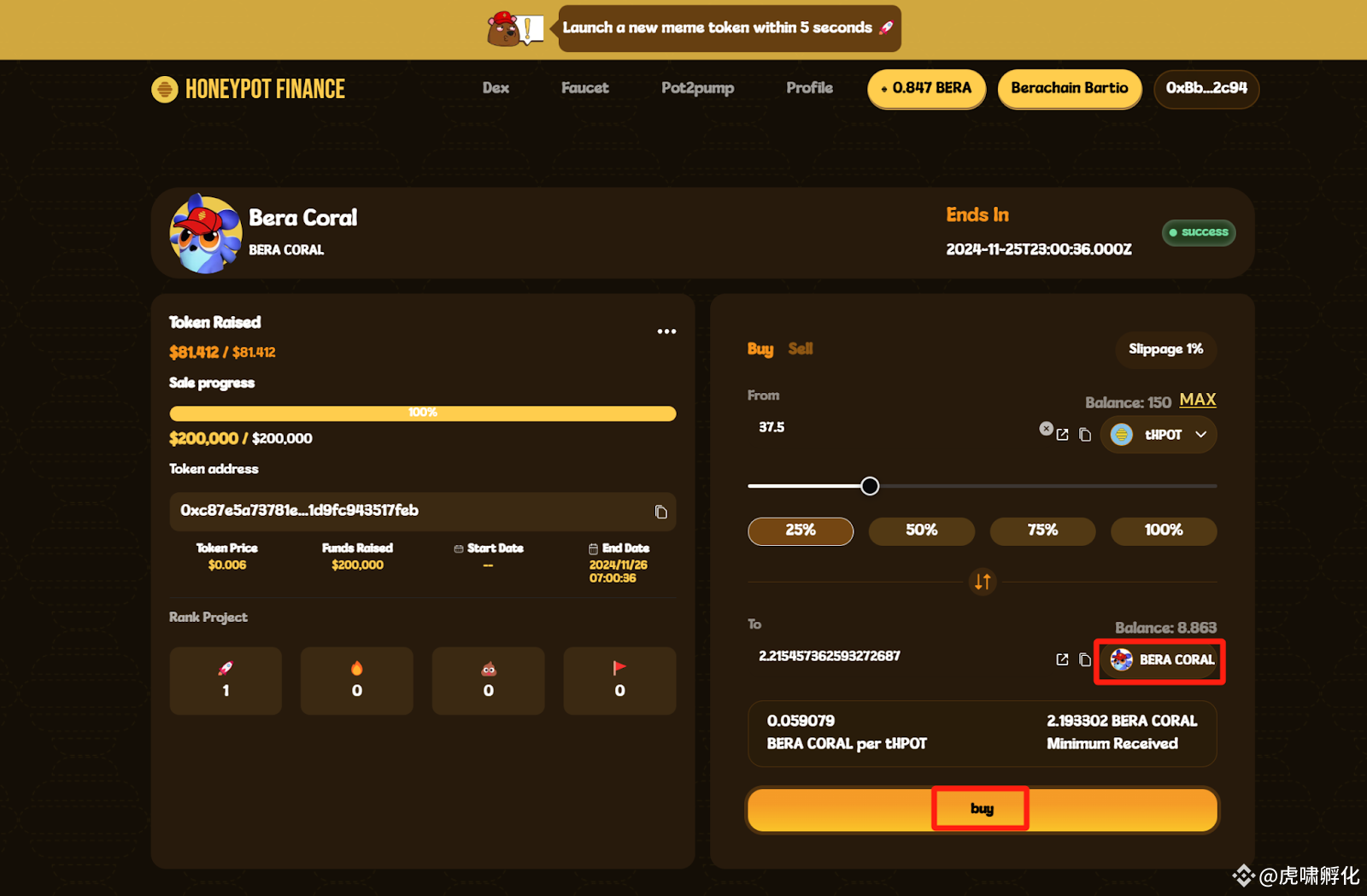 [HoneyPot Finance]: 在 Honeypot 上交易 ‘Bera Coral’ meme