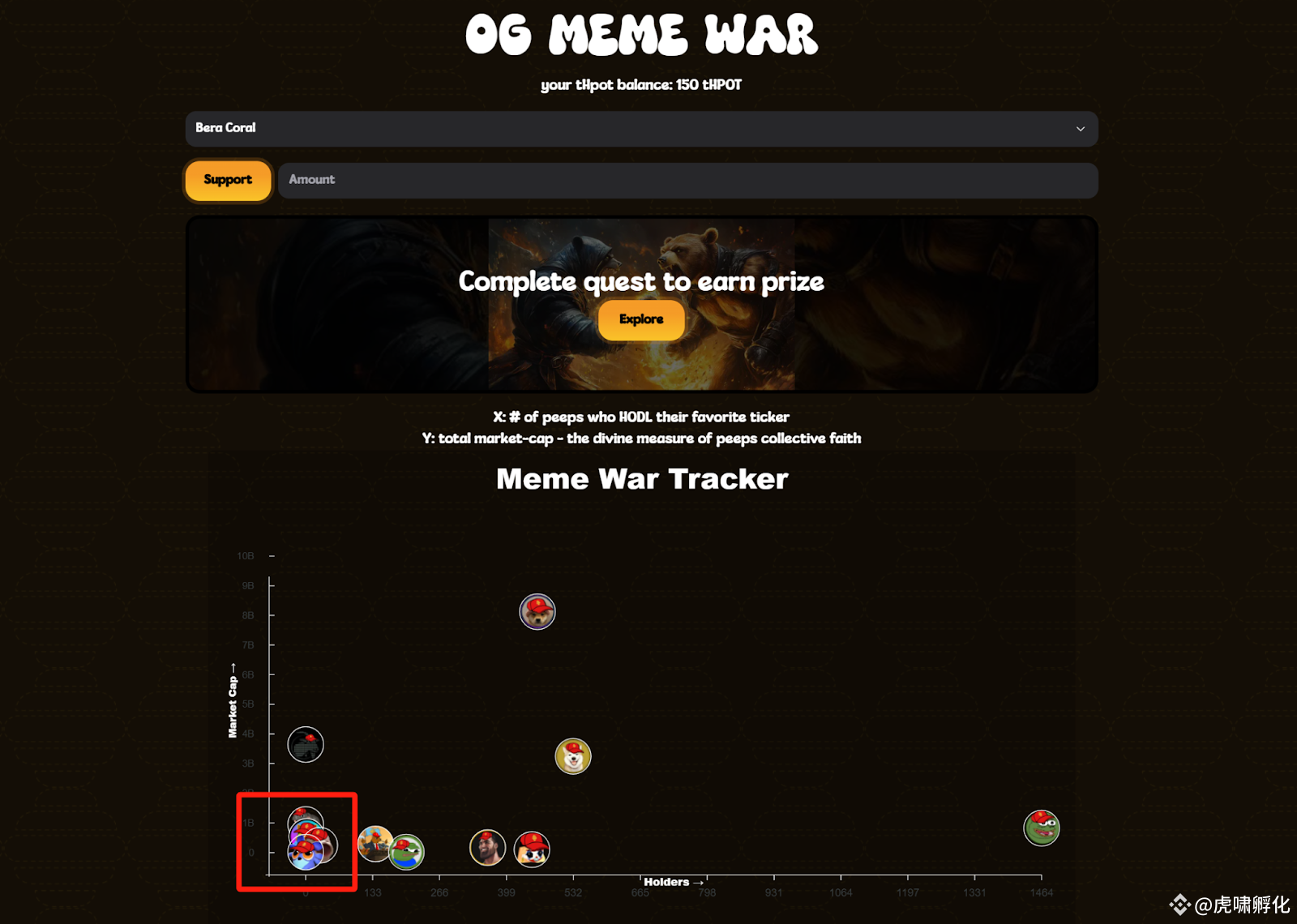 找到 Pop2pump,去导航栏上的 Meme War。或直接在坐标系上选择 Coral 的 meme 符号,或在搜索栏上搜索 ‘Bera Coral’ 。