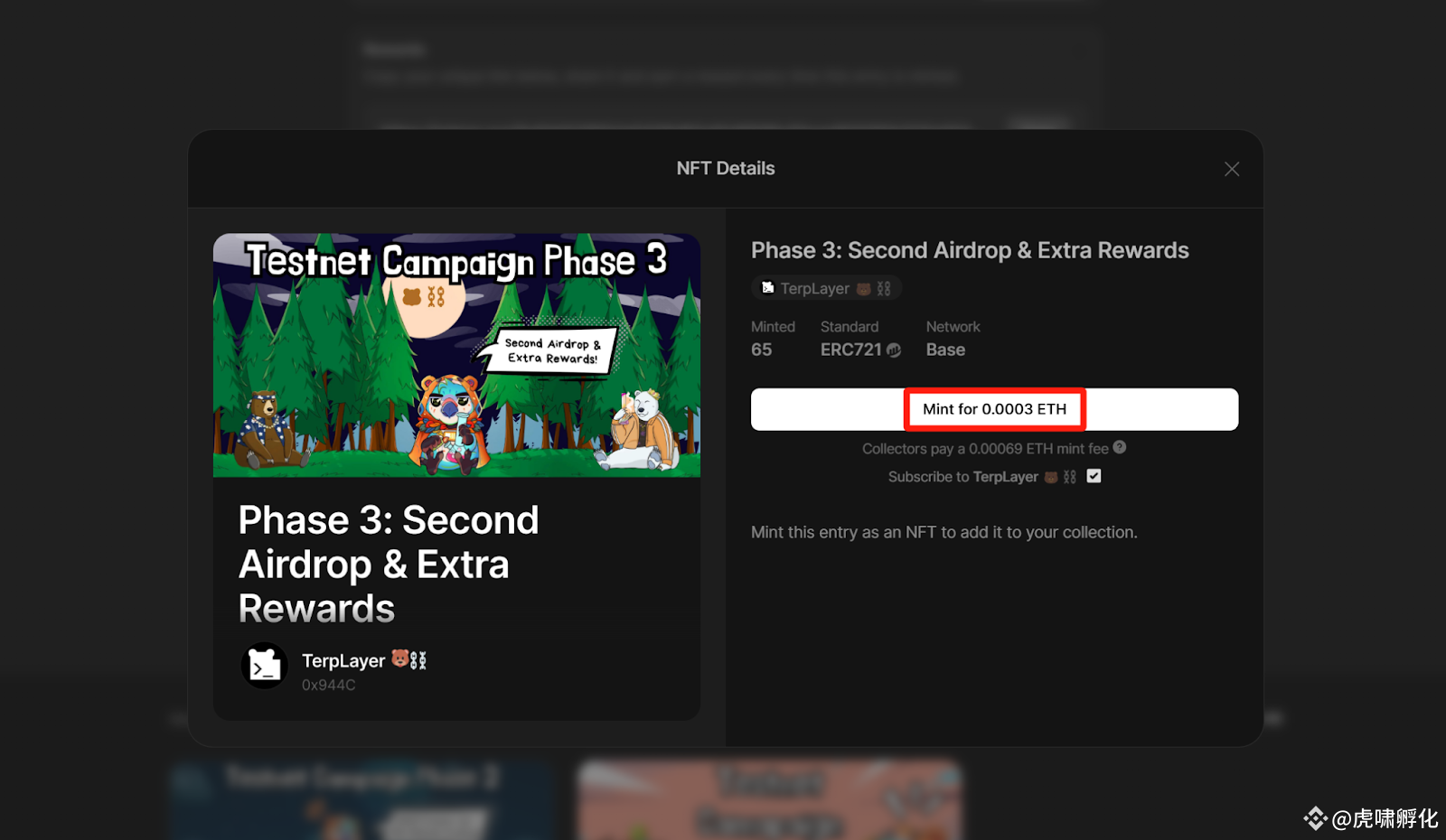 铸造 terplayer 的三期 NFT . 你需要一些 ETH 作为 gas 费。