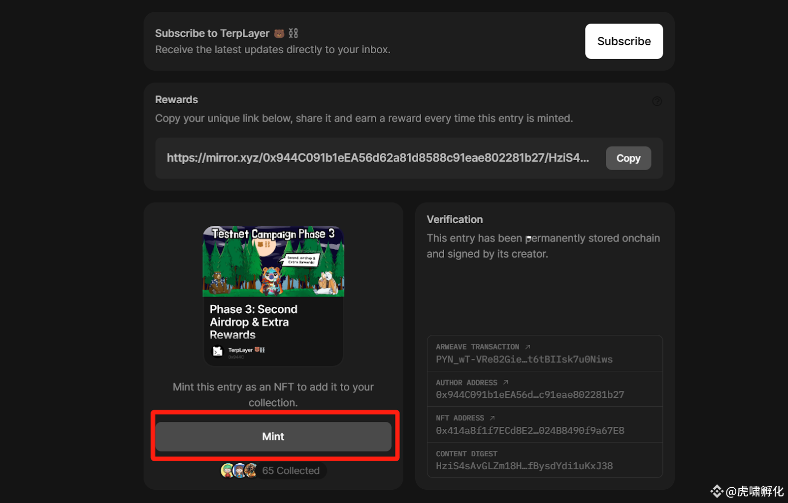 [Terplayer]:在 Mirror 上 铸造 NFT (Base)