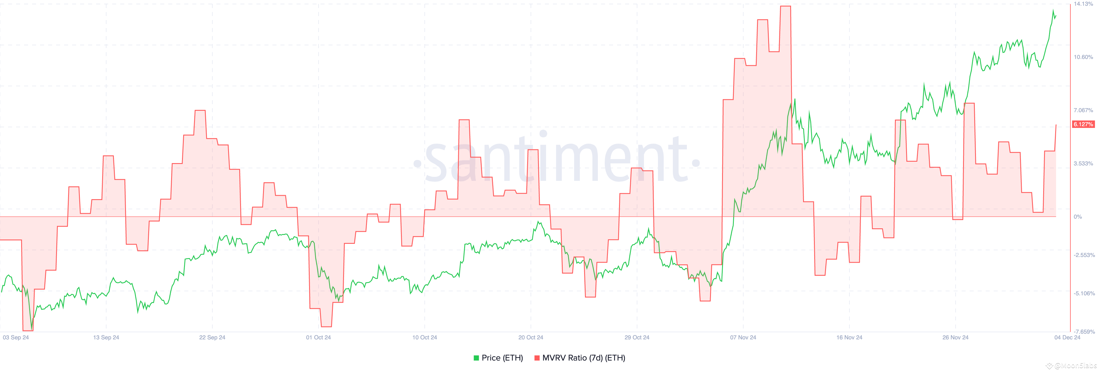 Historically, when ETH’s MVRV approached these levels, it often led to corrections. However, in some cases, MVRV climbed to 7% or even 13% before a significant downturn, suggesting the current rally could have more room to grow.