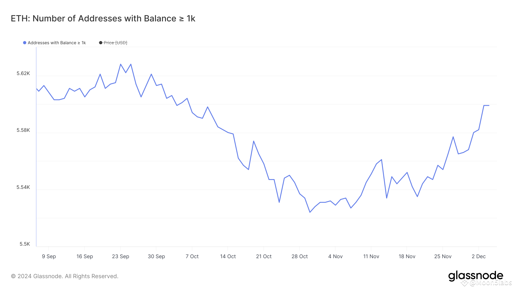 The number of wallets holding at least 1,000 ETH hit a three-month low of 5,524 on October 30, but has since rebounded. By November 3, this figure rose to 5,599, the highest since October 6.