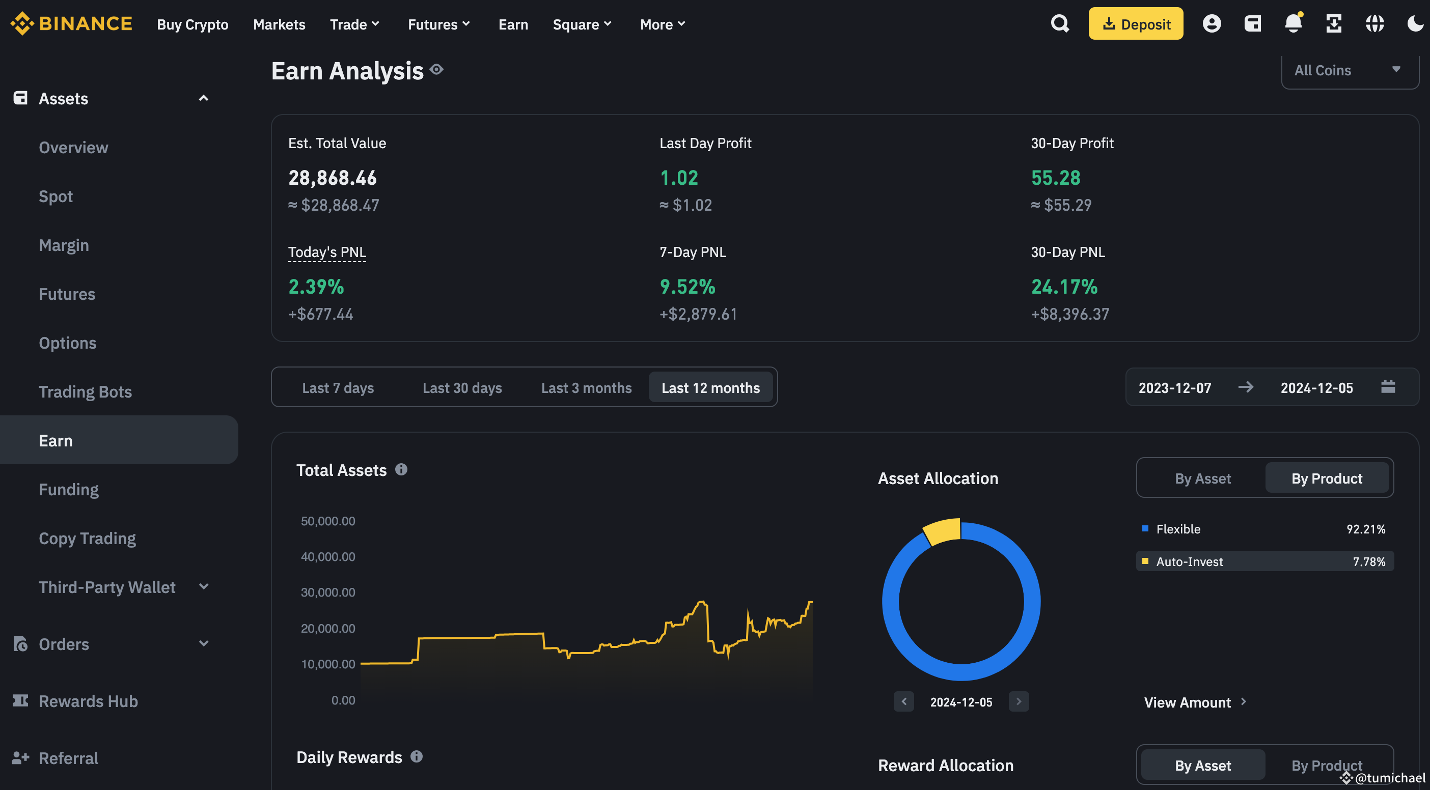 - 92.21% Flexible Staking: Indicates most funds are allocated to products with flexibility, allowing liquidity while still earning interest.
