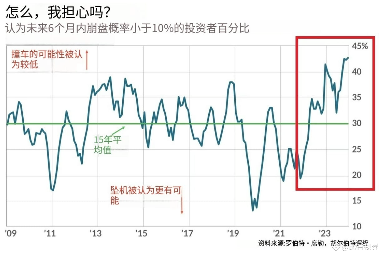 6.43%的个人投资者认为未来6个月内不会出现市场崩盘,这是有记录以来的最高比例,随着市场反弹这一比例在短短2年内翻了一番,看来,自信情绪无处不在呀(图3)