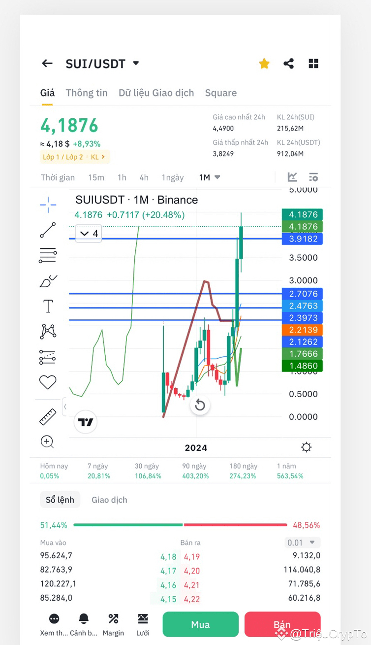 $SUI con hàng đẻ trứng vàng đối với MM chưa con nào L1 bay x8 từ vùng đáy. Ad đã bảo là nó bay vô đối thủ trong mùa này đối với dòng L1. Nếu ai theo dõi sẽ biết điều đó.Nhìn cây đẩy của nó thấy sự fomo thật khủng khiếp nhưng đây chắc chắn không phải là nhà đầu tư nhỏ có thể đẩy được x8. Có nghĩa nó đã có bàn tay phù phím của anh MM.Nhìn chart nó thì vùng gap retest để lại thật khủng khiếp. Lỡ đu vào thì khi nó sập không biết khi nào về được đỉnh.Nhưng nhìn chart hiện MM vẫn chưa cho nó xuống. Vẫn là con hàng đẻ trứng vàng của MM để kéo thanh khoản.Check lại thanh khoản thì vùng 4,5-48 tạm thời rất ngon trong ngắn hạn khi có 1-2 con cá voi mở short lớn vùng này. Trong dài hạn thì thanh khoản long lại ngon.Về ngắn hạn nó có vùng cần retest ở 3,9-4.0 để tiếp tục đẩy nha. Nhớ là nó tiếp tục đẩy vì cây M thứ 2 của nó không phải là 1 cây đẩy rướng. Mà là 1 cây đẩy thật.Còn khi nào nó sập thì phải hỏi anh MM thôi. Ảnh cho nó lên bao nhiêu thì lên bấy nhiêu $SUI