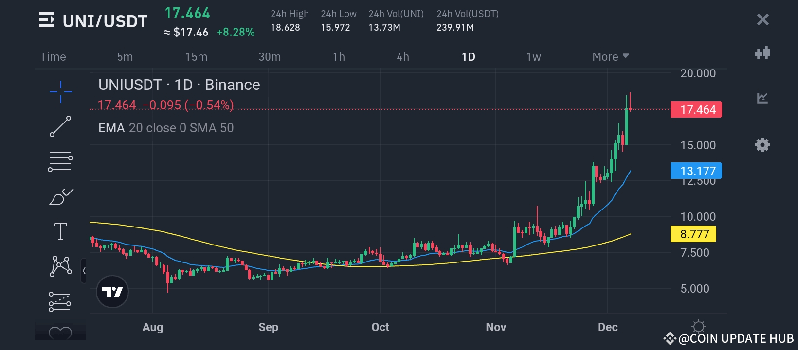 UNI/USDT is currently in a powerful uptrend, with strong support from buyers and consistent momentum. Whether you're a trader or a long-term investor, this is a token worth monitoring. A breakout above $18.5 could confirm another leg up toward $20 and beyond, while pullbacks could provide excellent buying opportunities.