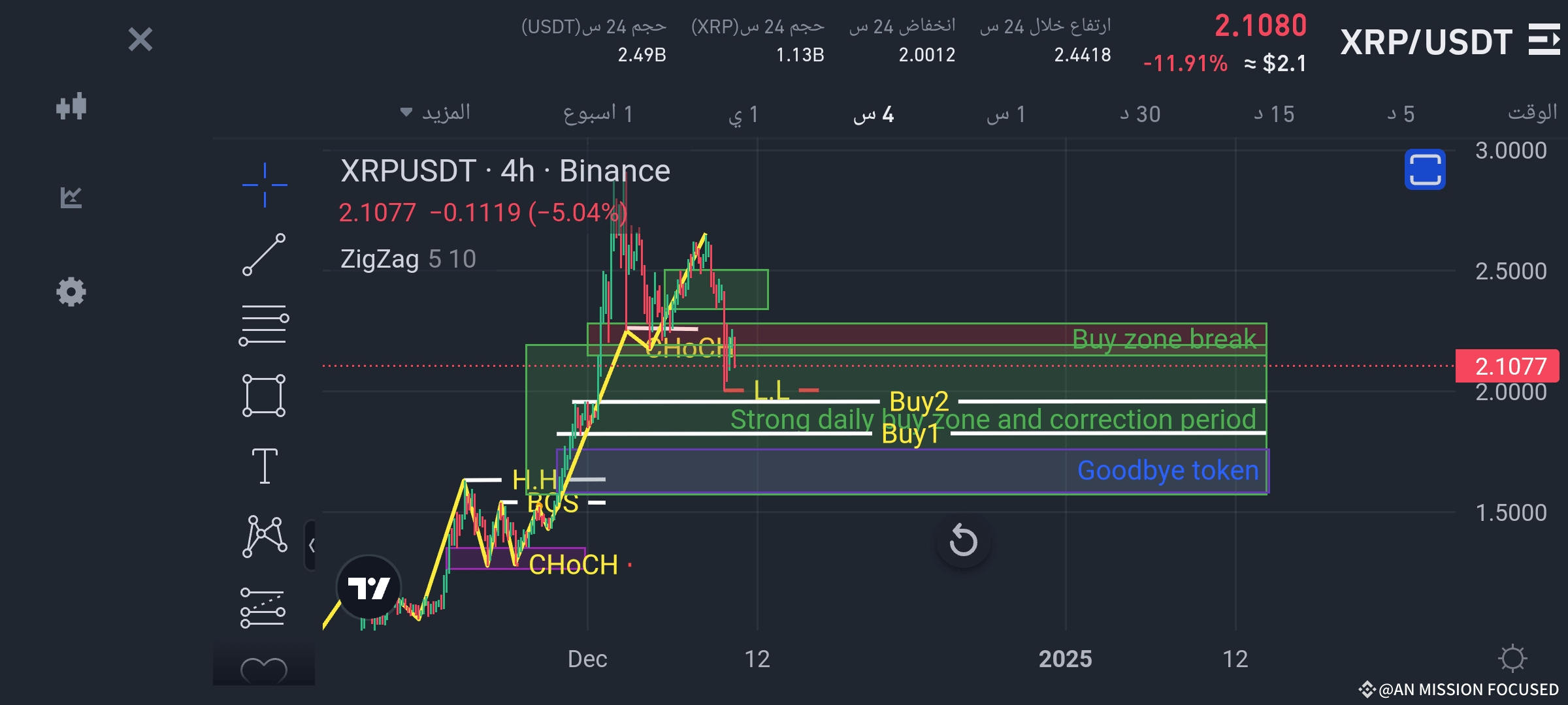 كسر Buy Zone Break سيدفع السعر نحو Goodbye Token Zone مع احتمالية تراجع إلى مستويات أقل من $2.