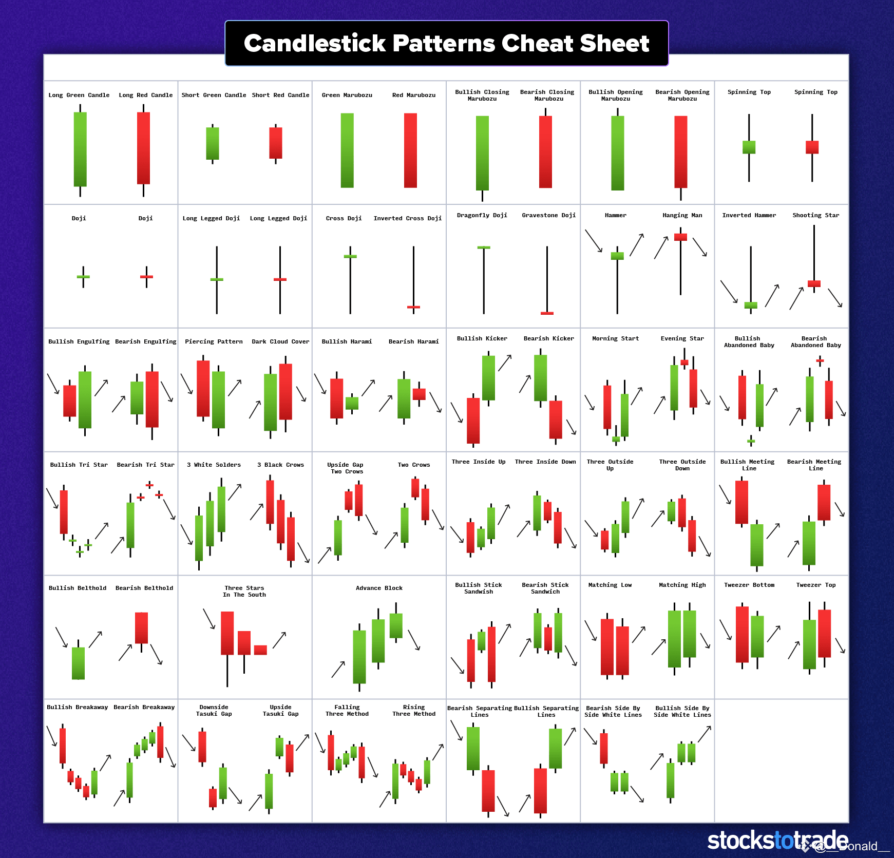 - **Doji**: Market indecision, often before a trend reversal. 🔄