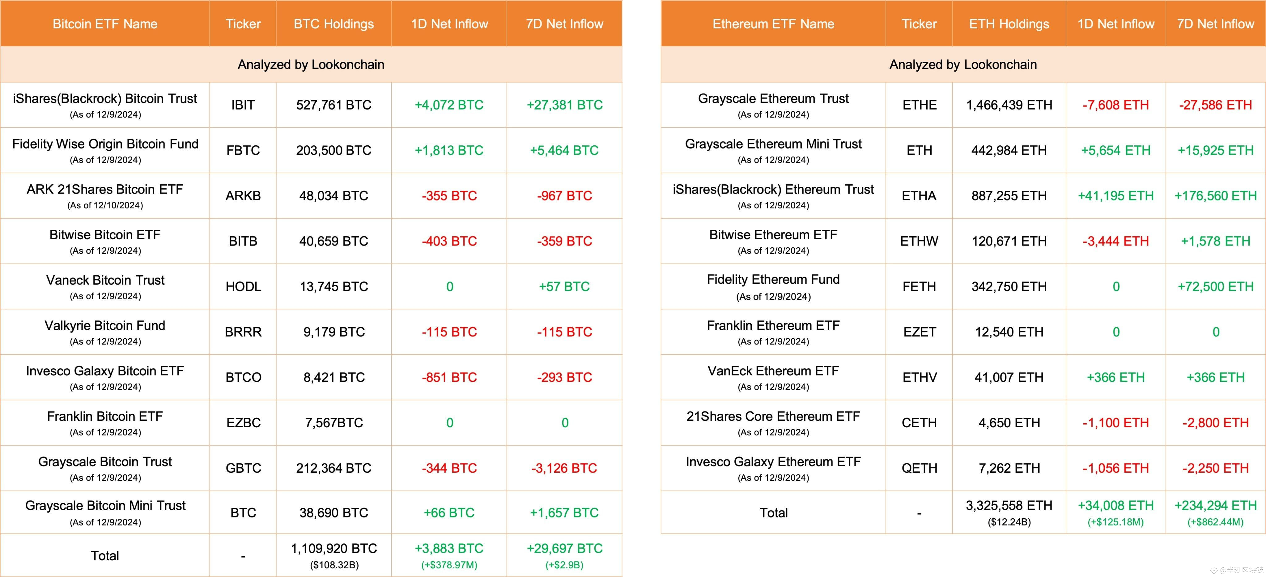 10 支比特币ETF 净流量:+3,883 $BTC(+3.7897 亿美元)#BlackRock流入 4,072 $BTC(3.9737 亿美元),目前持有 527,761 $BTC(515 亿美元)。