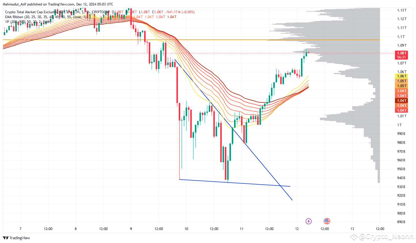 Recent total3 market make a asending treingle ema ratio are going to high in the sky. And recent market have huge down fall so as we expecting this market are not falling like this atleast few days.