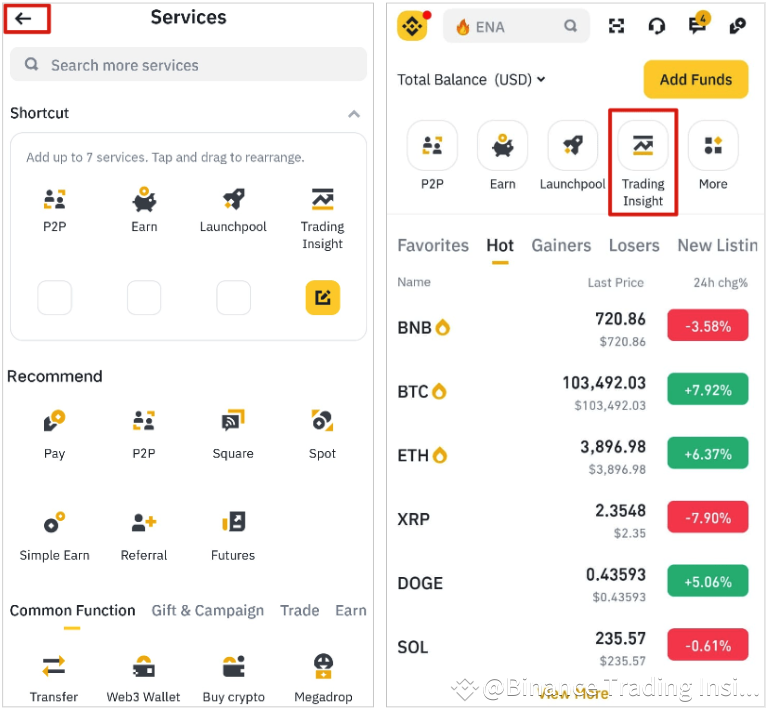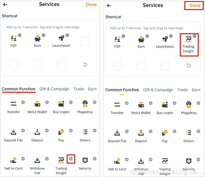 Under [Common Function] tab, select [Trading Insight] and add it to the shortcut.