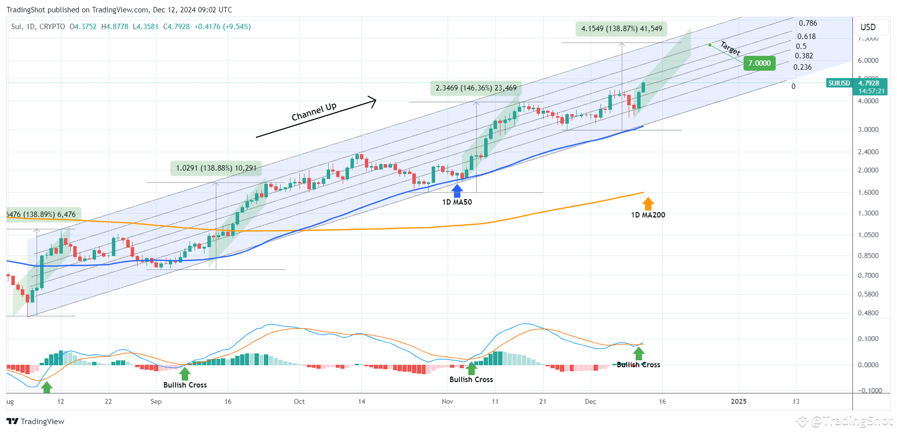 On the current analysis we view SUI on its own on the 1D time-frame and on a much shorter-term horizon. The dominant pattern has been a Channel Up since the August 05 Low and the dynamic that stands out is that during every Bullish Leg, there has been a +138.89% rally.