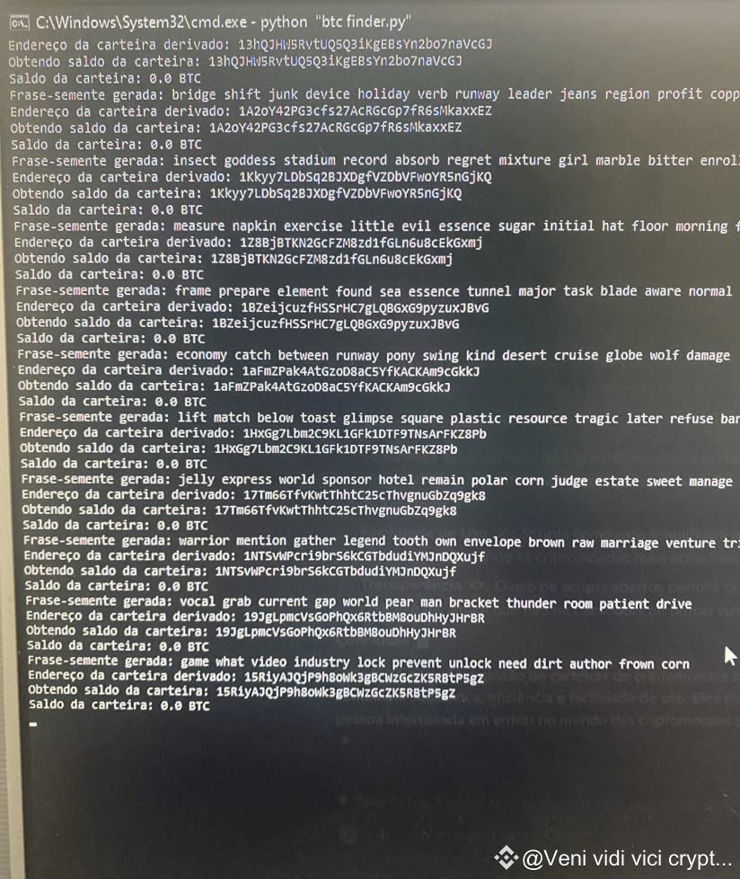 1. Geração de Frases-Semente 🌱: O script gera frases-semente, que são sequências de palavras usadas para criar e recuperar carteiras de criptomoedas. Essas frases são essenciais para garantir que os fundos possam ser recuperados em caso de perda de acesso à carteira.