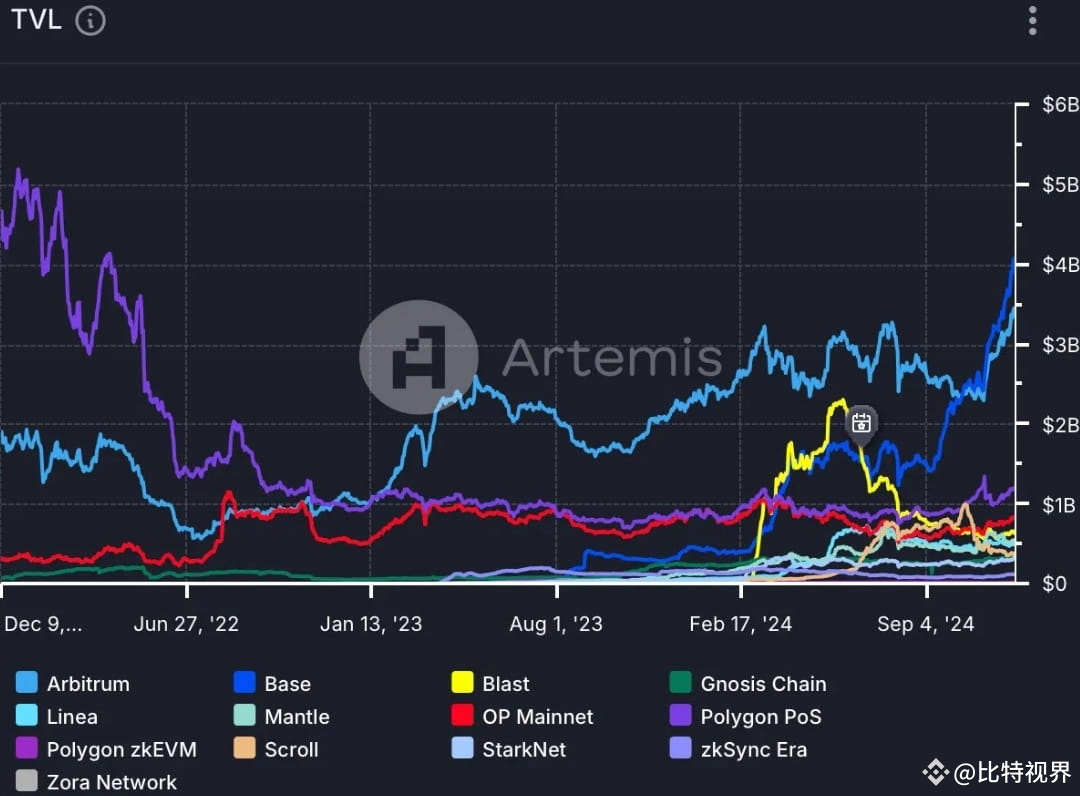 8.BASE成为领先的以太坊扩容网络,TVL超过40亿美元,这是2022年 #Polygon PoS 以来第一个达到这一水平的网络, #Base 现在在TVL和DEX交易量以及每日交易量和活跃地址方面超过了 #arbitrum $ARB 当然,它还主导着稳定币活动(图4)
